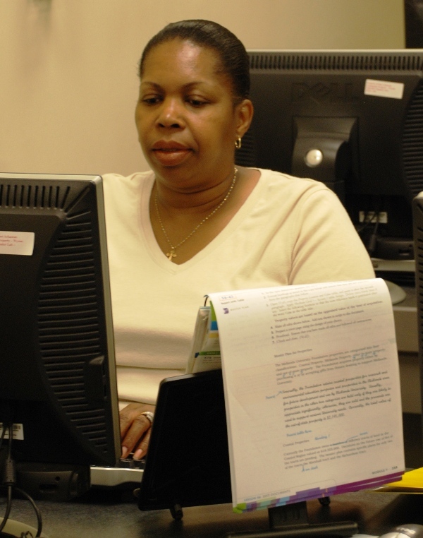 The computer lab is equipped with up-to-date computers, a printer, and educational software. The lab is available throughout the day and evening when not in use. A schedule is posted on the door.